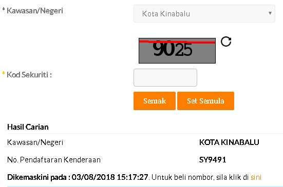 kini menyemak nombor pendaftaran kenderaan terkini dengan cara mudah dan pantas iaitu hanya secara